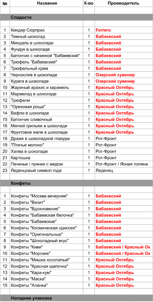 1. Проверить, можно ли внести изменения в состав подарка. Если нет, то скорее всего наборы были собраны еще летом из конфет, произведенных еще раньше
