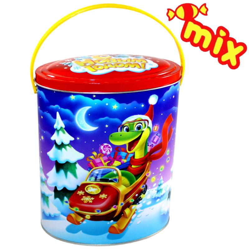 Детский подарок на Новый Год в жестяной упаковке весом 900 грамм