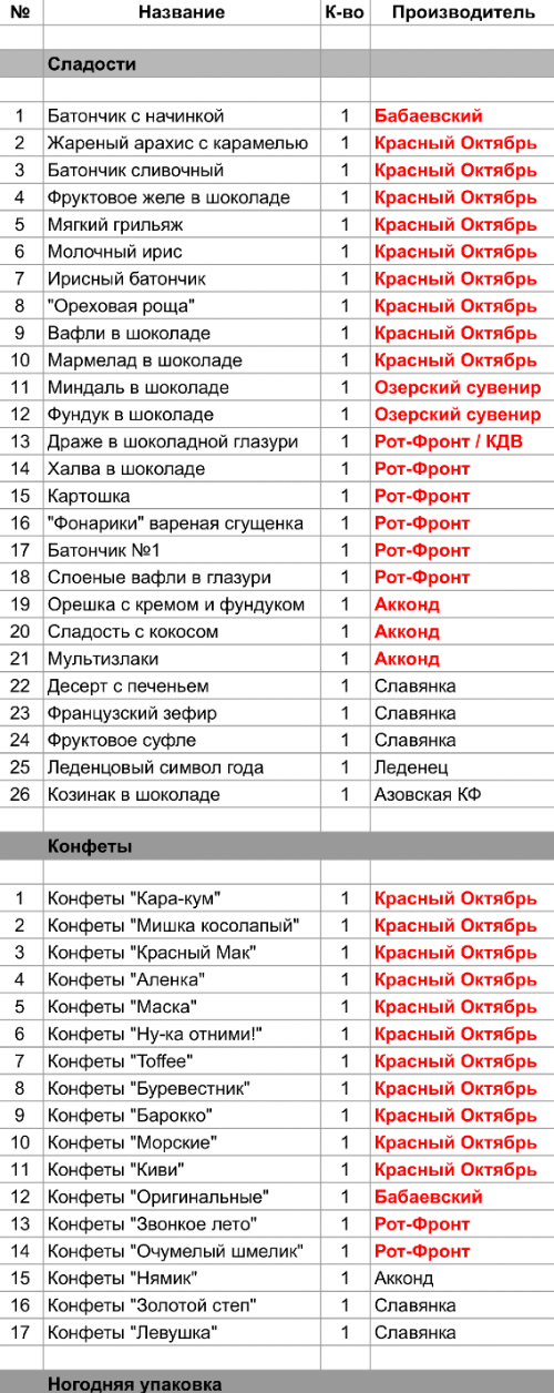 1. Проверить, можно ли внести изменения в состав подарка. Если нет, то скорее всего наборы были собраны еще летом из конфет, произведенных еще раньше