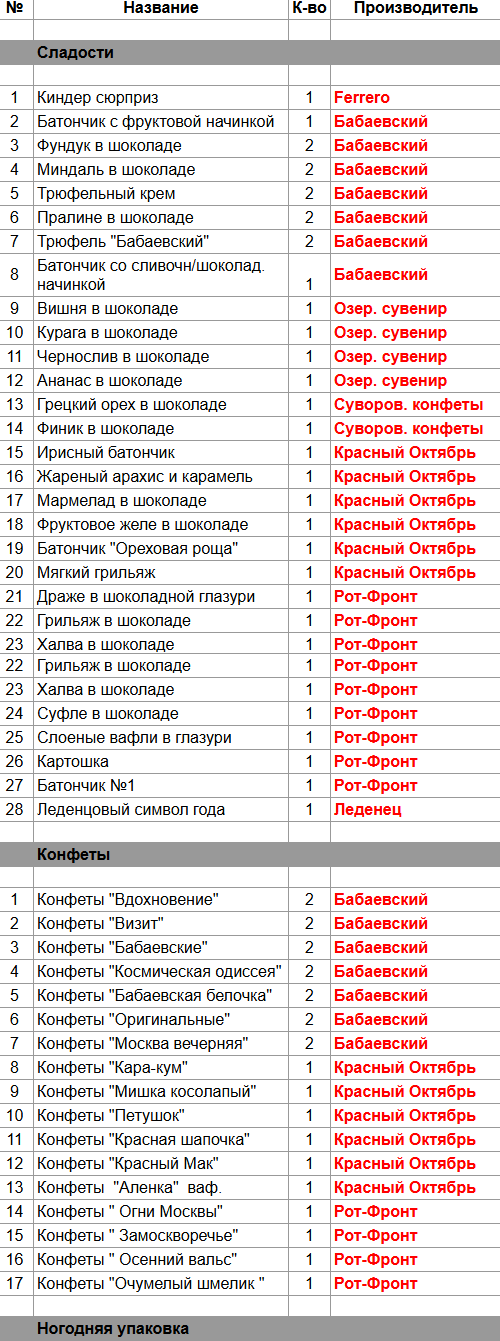 Опубликовано в Составы подарков